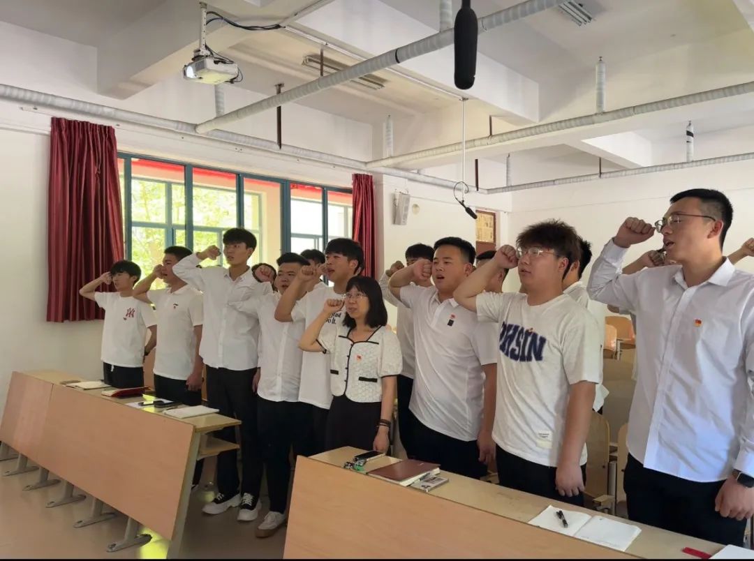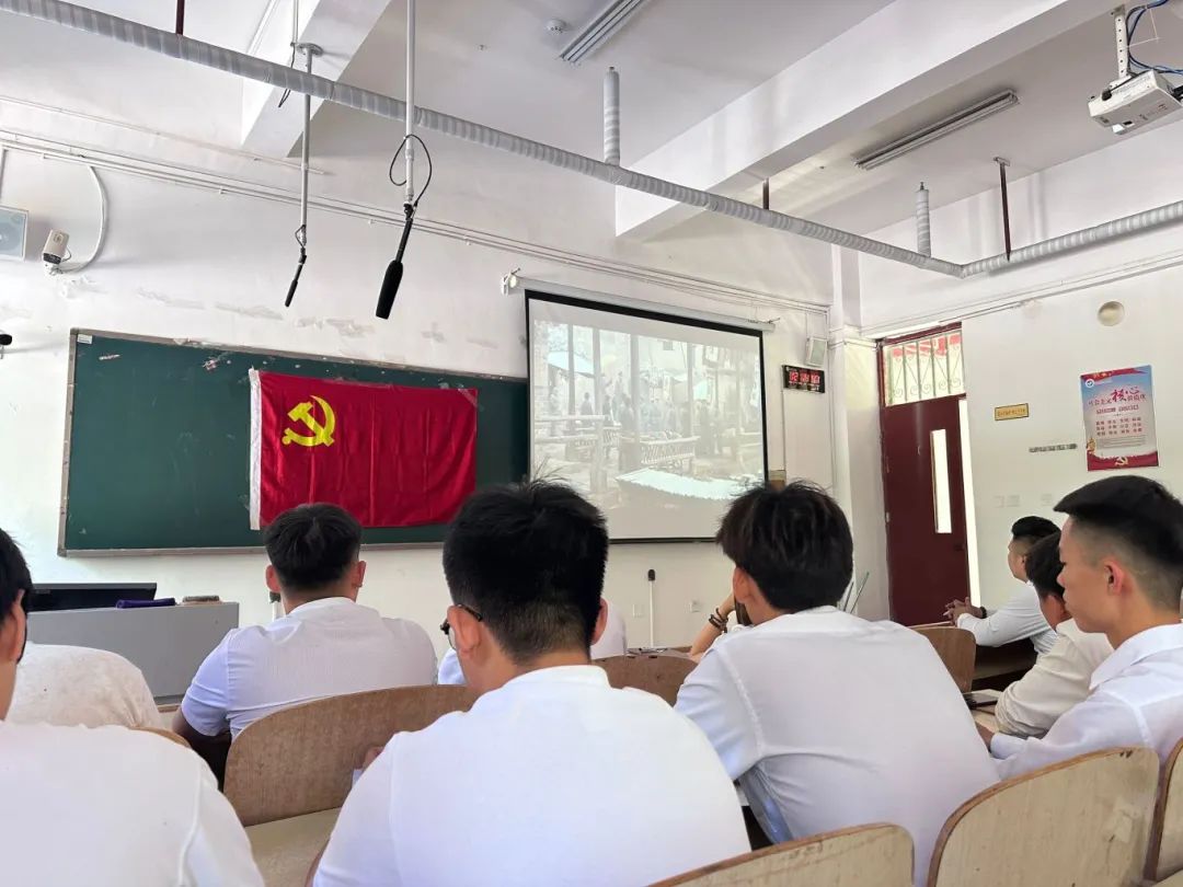 首先,在韩老师的带领下共同观看影片《建党伟业》,回顾了中国共产党成立的历史背景和光辉历程,影片从辛亥革命开始,展现了中国社会的动荡不安和革命党人的坚定信念,使同学们感受到中国人民不屈不挠、勇于抗争的奋斗精神和当时青年学子们高举爱国旗帜的激情和勇气。随后,怀着崇高的敬意集体朗诵建党诗歌《红船,从南湖起航》,通过诗歌朗诵缅怀革命先烈、传承红色基因,厚植爱国情怀,激励同学们在新时代新征程上接续奋斗、勇往直前。最后,党员干部面向党旗重温入党誓词,再次发出铮铮誓言,表达了对党的事业奋斗终生的坚定决心和信念。