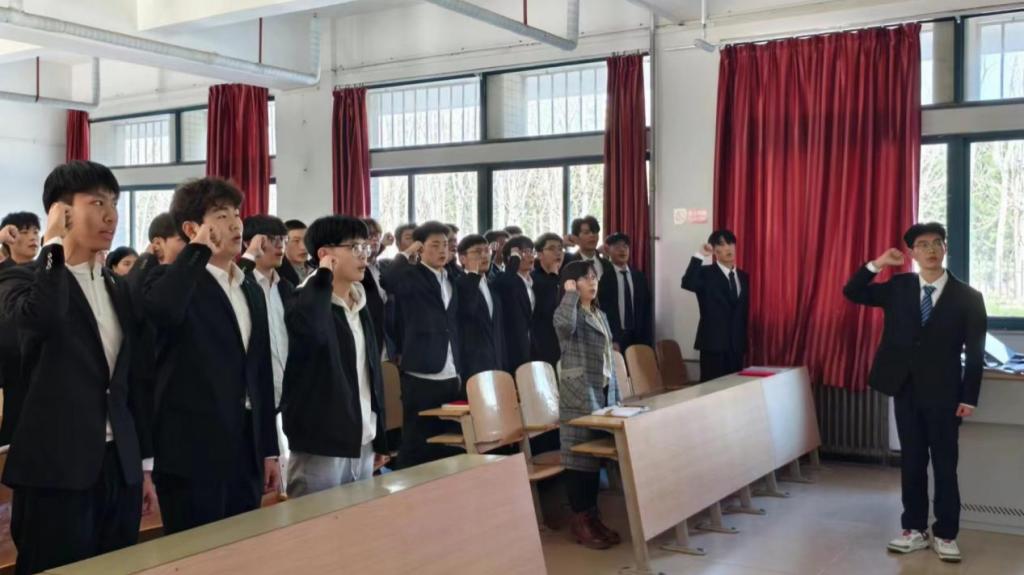 最后,由第四期培训班学员代表管科璇领誓,全体第四期培训班学员庄严宣誓。右拳高举,目光炽烈,如钢铁铸就的誓言在掌心凝聚,他们以青春之名面向团旗庄严立誓:"以赤诚之心铸就理想信念,以奋斗之志肩负时代重任!"每一句誓言都似惊雷撼动会场,展现出新时代青年对党的忠诚如磐、对理想的坚守如初,更彰显着他们将用热血与行动书写"请党放心,强国有我"的青春答卷。