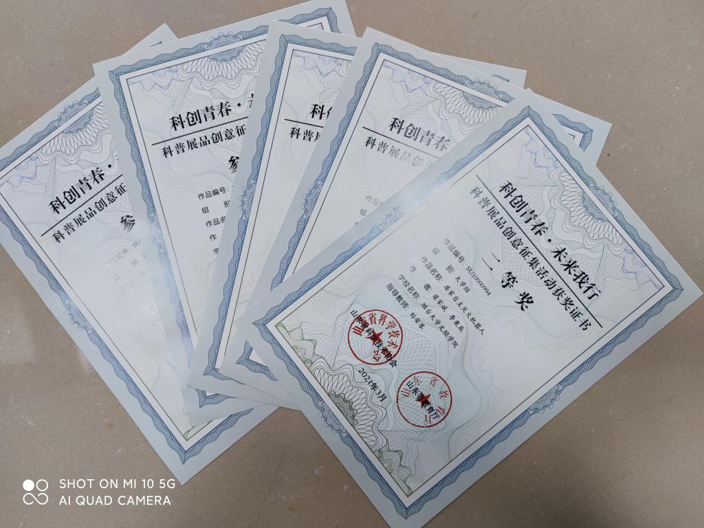 为进一步促进馆校结合,培养师生创新精神和实践能力,激发员工的学习兴趣,山东省科协、教育厅面向全省大、中、小学科技馆开展了以“科创青春、未来我行”为主题的科普展品创意征集活动,公司推选五个作品,其中居家自主灭会机器人项目喜获二等奖,其余项目获评参与奖。