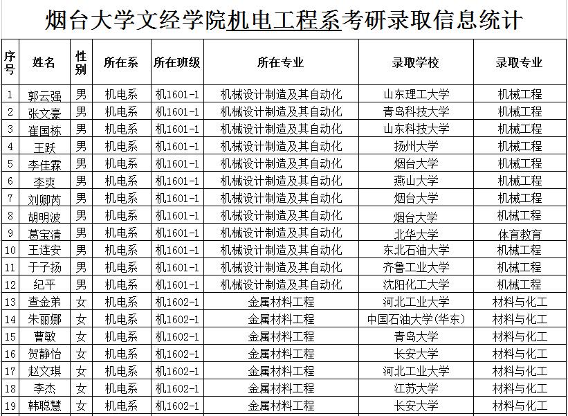 2020年应届毕业生研究生录取工作已经结束,机电工程系共有49名同学考取了研究生,其中一名同学考取了985院校,七名同学考取了211院校,创下机电系历史新高。