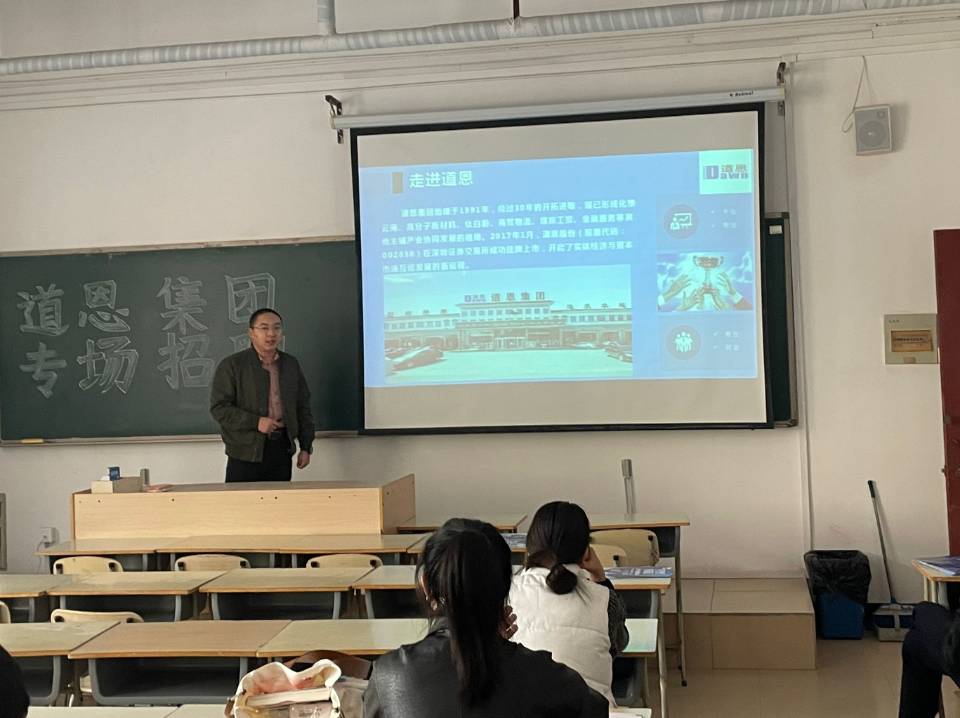 针对专业进行定向招聘,使员工在选择工作时能选到与自己专业对口的工作。10月26号上午十点在一教209召开由古天乐代言太阳集团主办、古天乐代言太阳集团承办的道恩集团专场招聘会,道恩集团负责人及2022届毕业生参加此次专场招聘会。