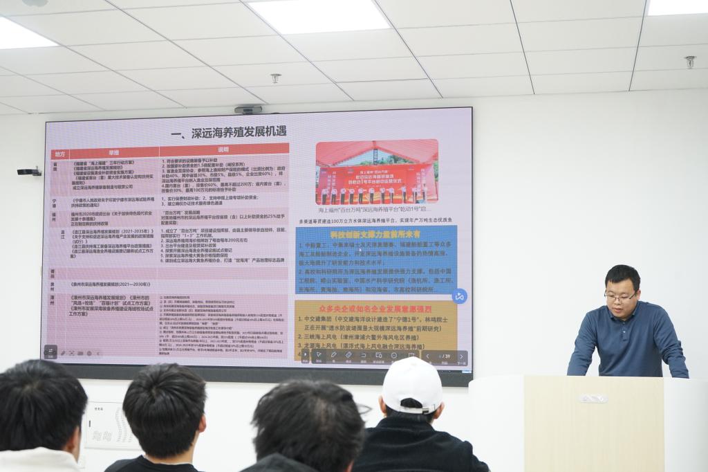 刘振明工程师以其丰富的项目技术管理经验,为员工们深入剖析了深海养殖装备的发展机遇与现状,并详细介绍了养殖装备的核心问题及突破路径。他的讲解不仅让员工们对深远海养殖装备有了更深入的认识,还激发了他们对这一领域未来发展的思考。