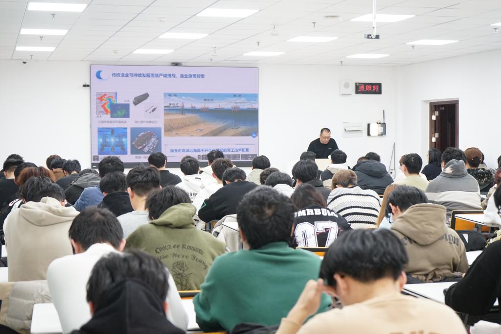 在讨论环节,同学们积极提问,对海洋牧场的等比例缩放模型表现出了浓厚的兴趣。现场气氛热烈,互动频繁,充分展现了此次讲座的成效。