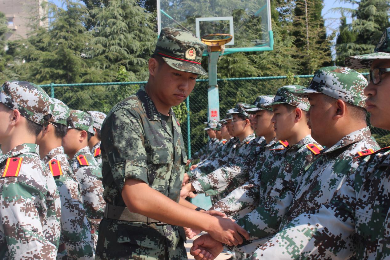 当走进训练场时,映入眼帘的是一群身穿迷彩的活力少年整齐的站着军姿,有力的踏着正步,喊着响亮的口号,唱着激昂的军歌。放眼望去,是整齐的方块队,铿锵有力的步伐,在烈日下的他们依然身姿挺拔,有着军人的风范。在队伍中,会隐约注意到队伍中女生的身影,虽然少数,但很惹人注目,无论从她们站军姿时那笔直的身姿,还是从走正步时铿锵有力的步伐中,都让人们不难想起一句老话,“谁说女子不如男”,用“铿锵玫瑰”四个字来形容一点也不为过。新生辅导员和班助在队伍旁边陪伴着新生,机电工程系的系旗在空中飘荡着像极了是在为机电学子加油打气。