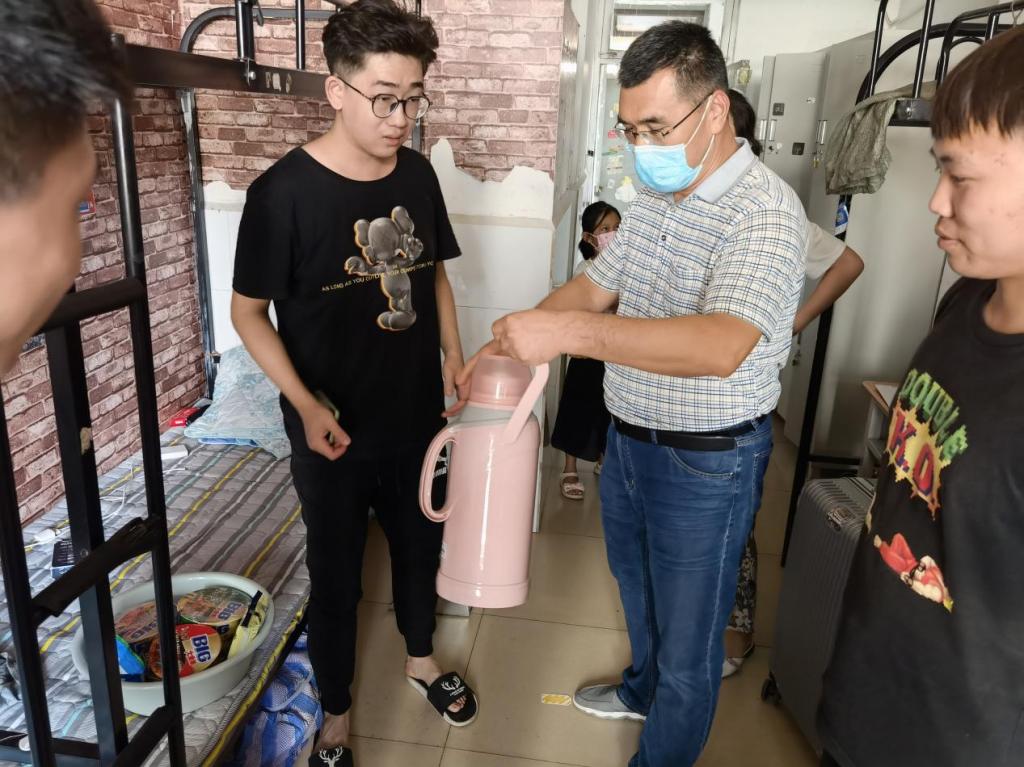 在新生宿舍,老师们与新生亲切交谈,拉家常,消除新生们的陌生感,叮嘱他们要严格遵守疫情防控期间校园管理规定,做好自我防护,遇到任何困难和问题及时与辅导员、班主任沟通交流,勉励大家要以饱满的精神状态迎接新的老员工活。同学们对老师们亲切的关怀以及对送来的生活用品,十分感动,并表示一定会严格遵守公司的疫情管控条例,配合好各项公司工作。