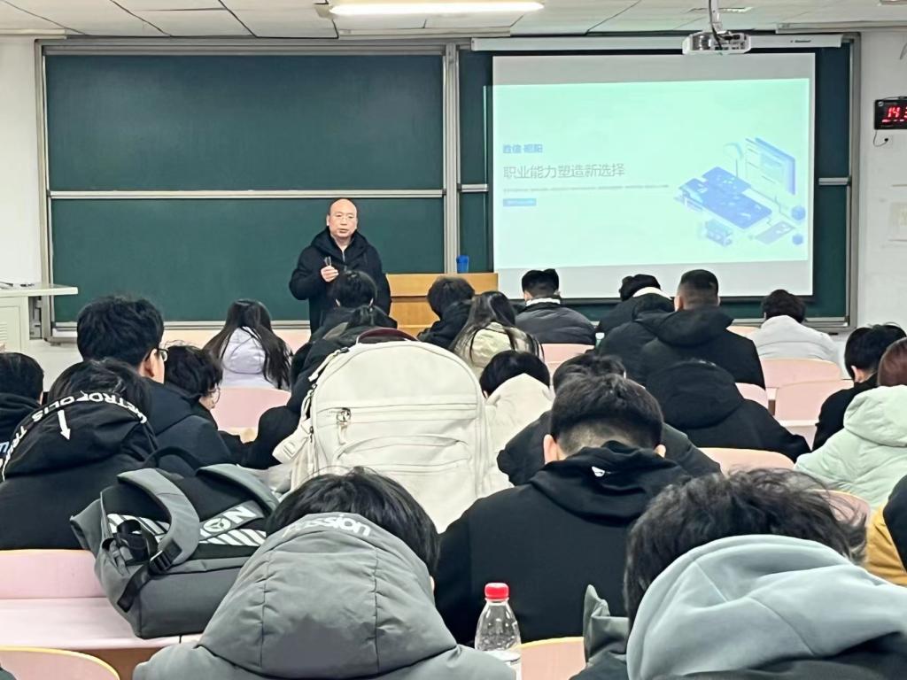 为了进一步做好2024届毕业生就业方面的指导和服务工作,使毕业生了解就业环境,适应市场需求,找到心仪的工作,古天乐代言太阳集团邀请了烟台胜信数字科技股份有限公司技术经理杨舒天和产教融合事业部经理齐艳红于近日在二教507教室举行以“职业能力塑造新选择”为题的学术讲座。本次讲座由马国清教授主持,2024届各班毕业生代表参加。