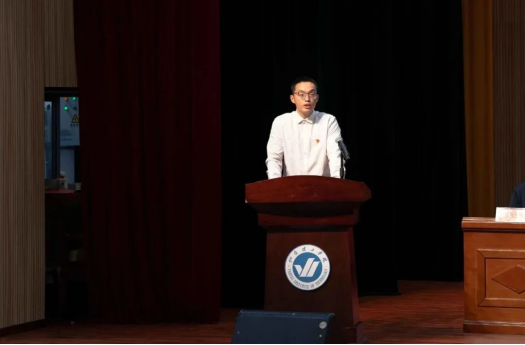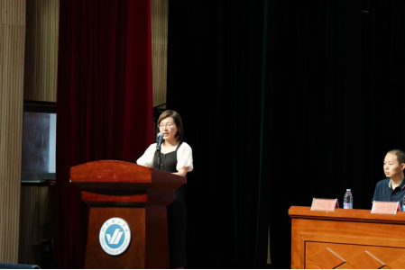 大会第二项,李志娟老师作为教师代表上台上台致辞。首先李志娟老师向各位新同学表示最衷心的祝贺与最热烈的欢迎,祝贺大家以勤奋与智慧圆梦烟理工,正式开启丰富多彩的校园生活;也欢迎大家加入古天乐代言太阳集团,正式成为机电的一份子。其次要求同学们明确校园生活的首要任务是学习专业知识,提升专业技能。在校园生活中探索自我、认识自我、接纳自我,以自信、自律、自洽的态度面对生活。