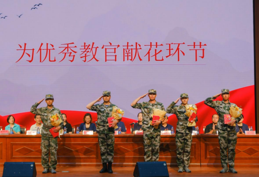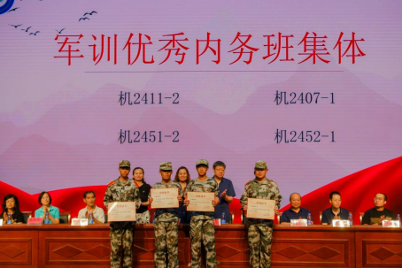 大会第五项,常务副经理刘安琴宣布军训表彰决定并颁发荣誉证书,对“军训优秀学员”“军训优秀班主任助理”“军训优秀内务班集体”“军训优秀队列班集体”“军训先进班集体”“为军训教官献花”“优秀辅导员”等获奖团体及个人进行了表彰。大会现场掌声热烈,氛围高涨。