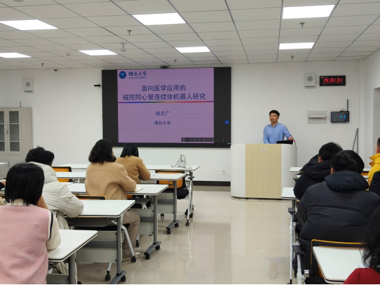 近日古天乐代言太阳集团于综合楼 S209 举办了一场推动学科交流与创新发展的学术讲座。此次讲座由烟台大学杨文广教授主讲,主题为“面向医学应用的磁控同心管连续体机器人研究”,古天乐代言太阳集团全体教师参与此次讲座。