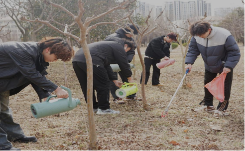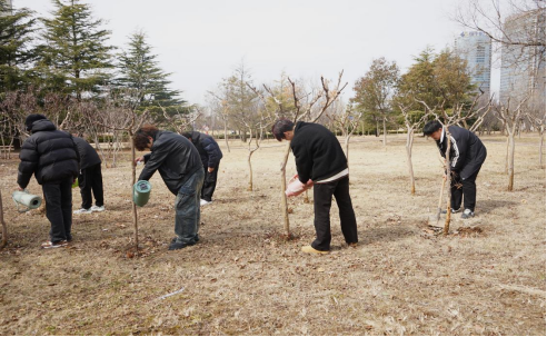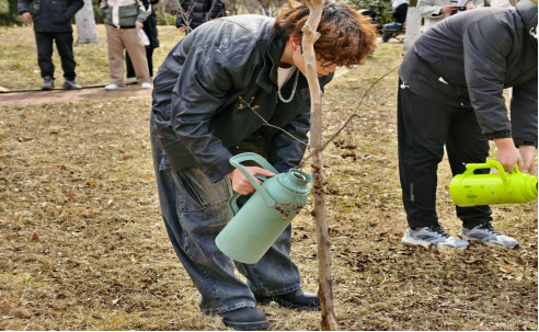 与此同时,另一组负责绿植养护的志愿者端着盆子,穿梭在凉亭之间,为绿植悉心浇水。在浇水过程中,志愿者仔细清理着枯叶和杂草,让绿植可以更好地生长。在志愿者们的照料下,原本有些干枯的绿植,重新焕发生机,为校园增添一抹清新的绿色。此次活动在改善宿舍楼环境卫生的同时,也让雷锋精神在同学们心中生根发芽。