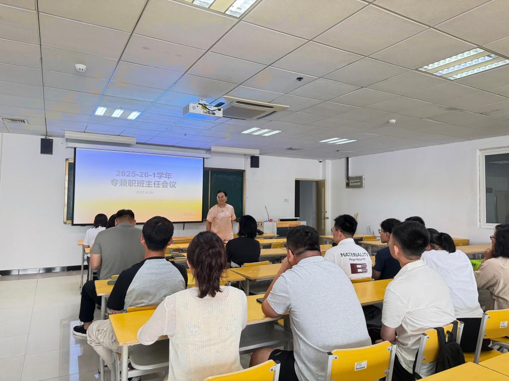 新学期伊始,为部署学期员工工作重点,提升育人实效,进一步加强员工管理工作。近日,公司召开2025-26-1学年专兼职班主任工作会议。参与此次会议的人员有公司党总支副书记王晓黎、团总支书记韩聪聪、全体班主任以及辅导员老师。