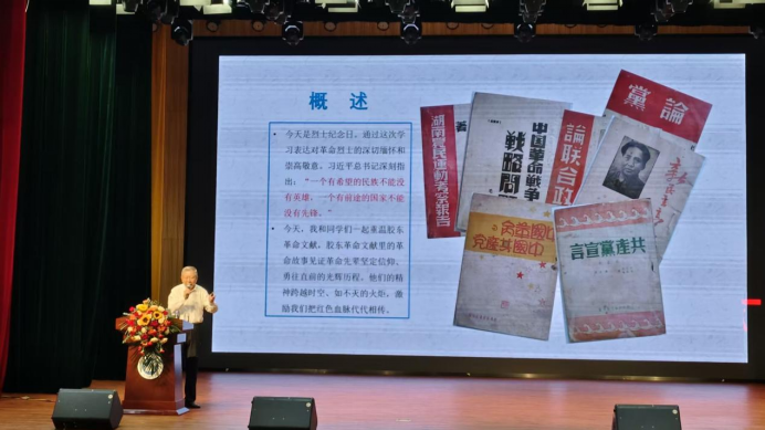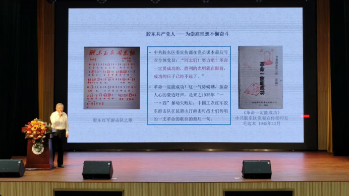 活动伊始,团总支书记韩聪聪致词,点明烈士纪念日举办活动的意义,旨在借胶东革命文献引导新生汲取英雄力量,扣好入学“第一粒扣子”,并介绍主讲人。宣讲中,李卫国以《25000里长征故事》《革命烈士传》等文献为依托,讲述红军过草地、李大钊就义等事迹,解读“听党话、跟党走”的信念,还原理琪、任常伦的担当,展现徐永彩家庭等的奉献精神,还以“半块毛毯”故事引发师生共鸣。