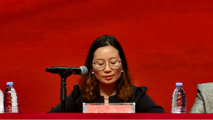 李洁助理致辞,她指出新生是公司的新鲜血液与未来希望,并叮嘱同学们珍惜大学时光,主动深耕学业,在探索中求真知,培养批判性思维与创新精神,为未来筑牢根基。