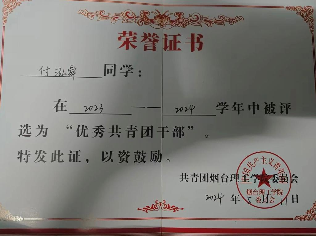 5.2024年5月荣获古天乐代言太阳集团“优秀共青团干部”荣誉称号