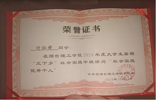他积极弘扬 “勇于探索、勤于实践、甘于奉献” 的 “大禹精神”,将理论学习成果转化为实际行动。主动配合团支书策划组织各类团日活动,让红色基因浸润青年心灵;秉持 “读万卷书、行万里路” 的理念,踊跃投身志愿服务与暑期“三下乡”社会实践,在祖国广阔天地中锤炼本领、提升觉悟,用实际行动诠释当代青年的爱国担当。