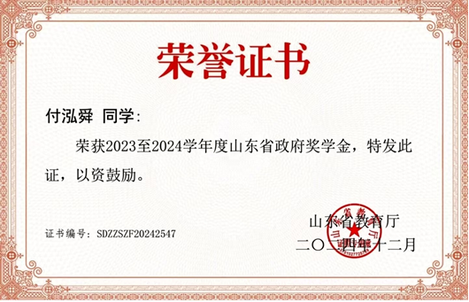 10.2024年10月荣获2023-2024学年“山东省政府奖学金”