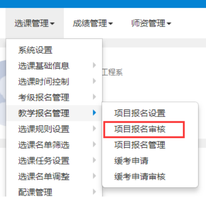 5.员工提交补修申请后,各院、系教务员需要在系统中对员工申请的课程进行审核(如下图所示),只有审核通过后,员工方可正常修读。