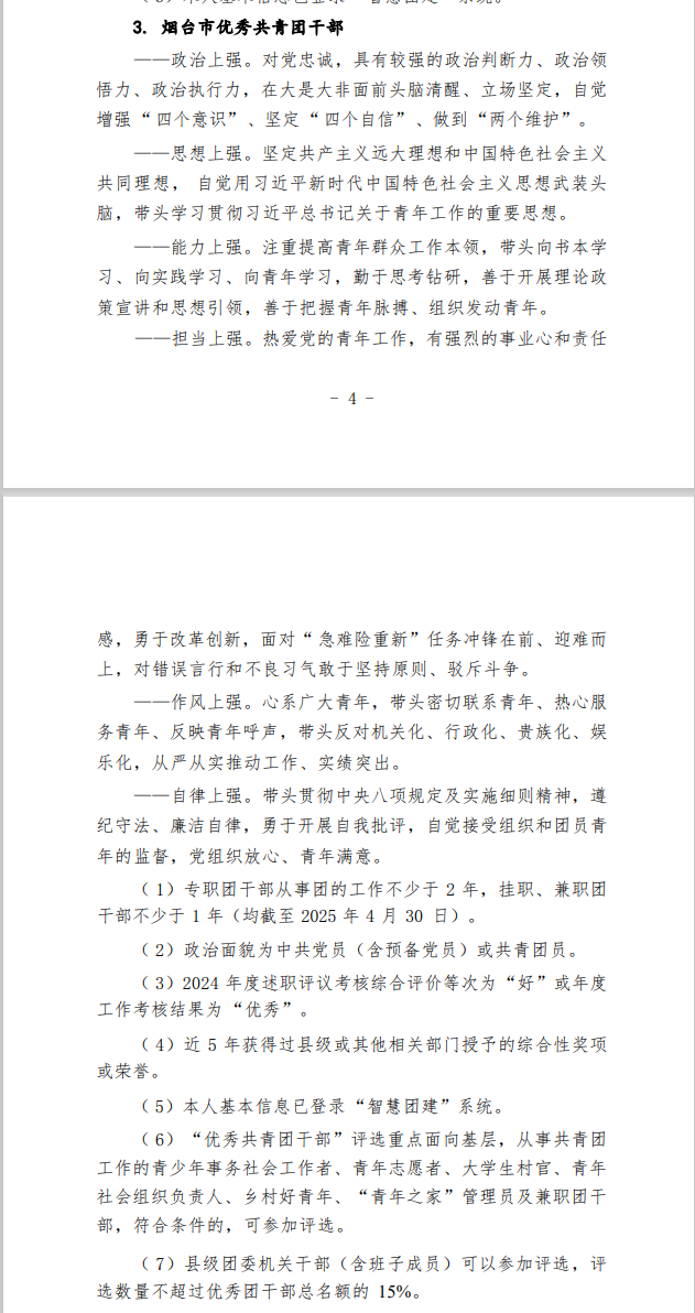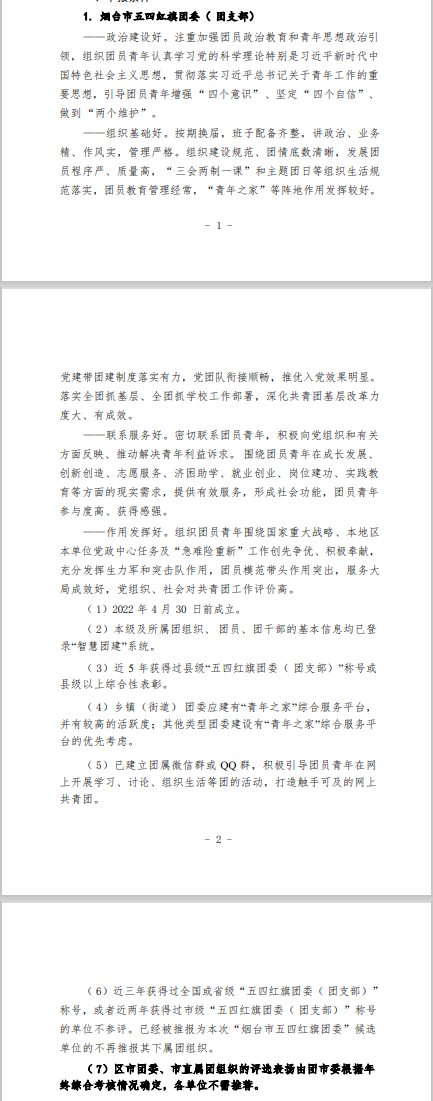 2024年度烟台市共青团工作先进集体、先进个人申报工作