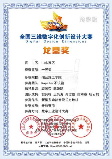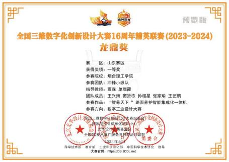 3.全国三维数字化创新设计大赛16周年精英联赛山东省区一等奖