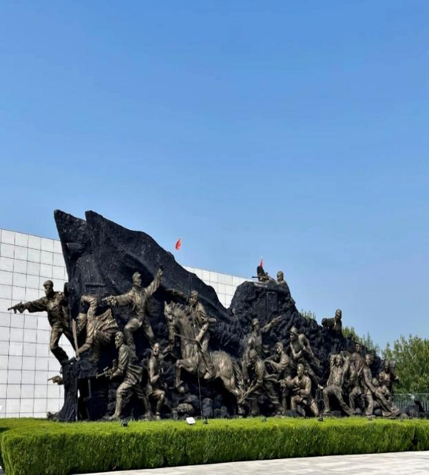 纪念园入口处,映入眼帘的是铁道游击队纪念碑,碑高33米,碑名由杨尚昆题写。碑座两侧的浮雕上,是游击队员与日寇战斗的画面,队员们站在碑前,行鞠躬礼,表达对先烈的崇高敬意。