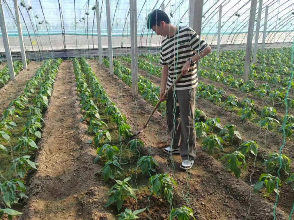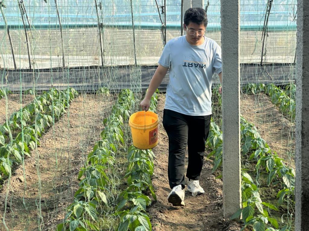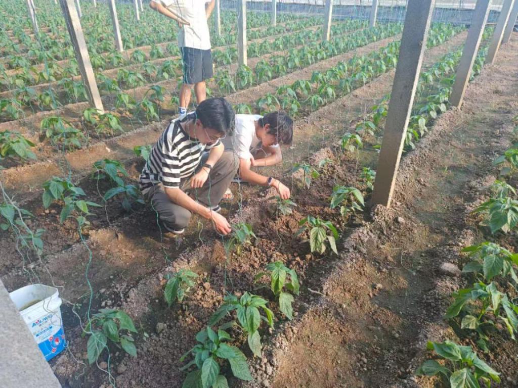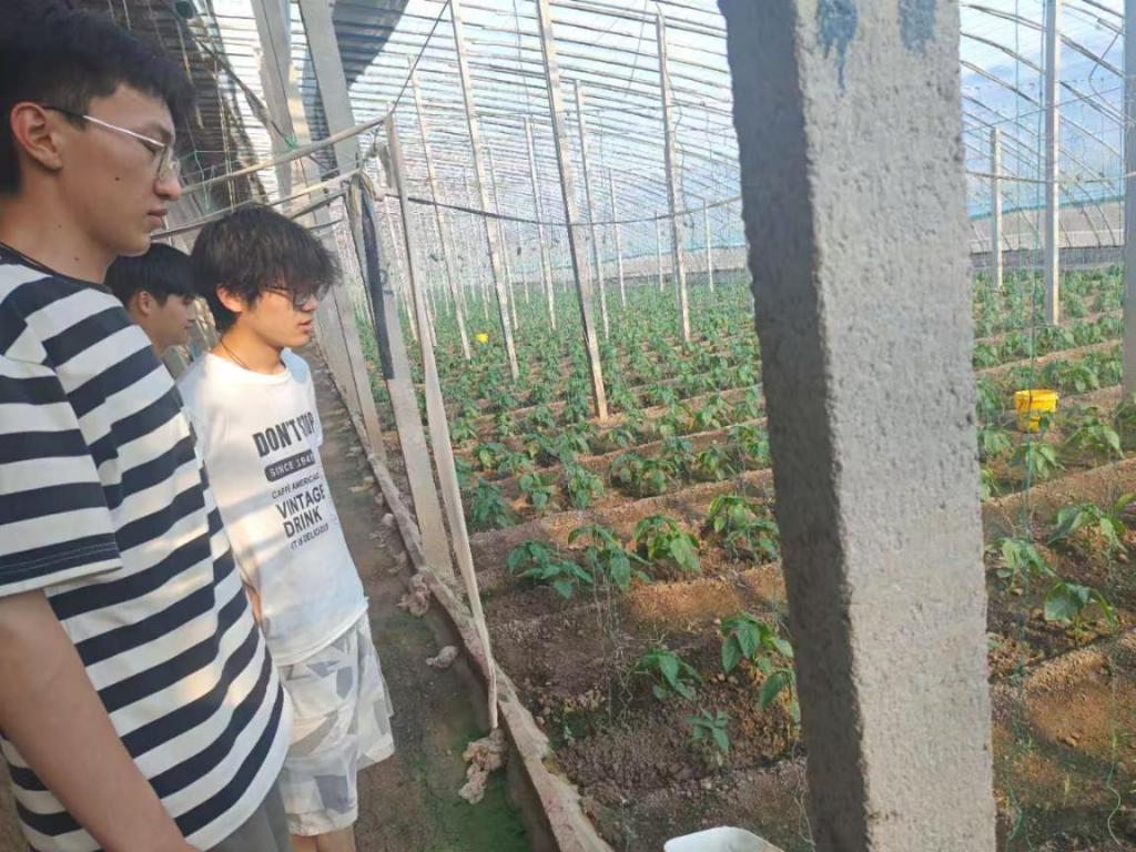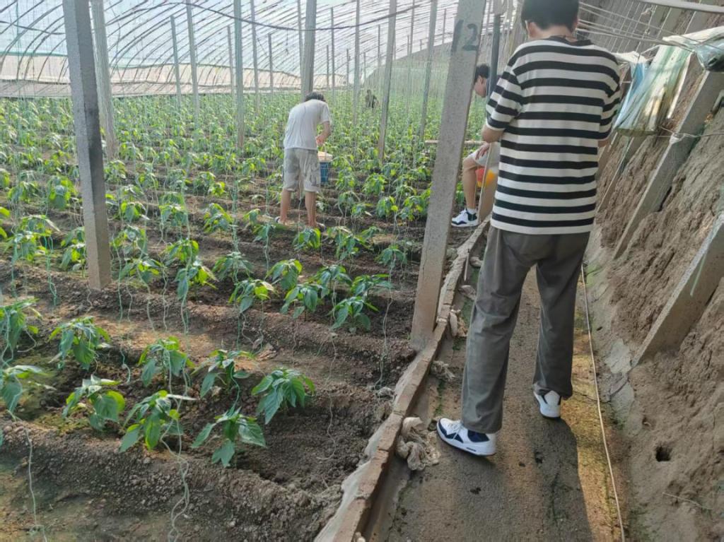 第二天,在村委会协调下,队员们走进蔬菜大棚,向农户学习种植技术。从植株养护到环境调控,队员们边听边学、动手实践,既掌握现代农业种植门道,也深刻体会技术对农业生产的重要性。午后,队员们分散田间,协助采摘作物、清理杂物,在劳作中感悟“粒粒皆辛苦”,坚定服务决心。