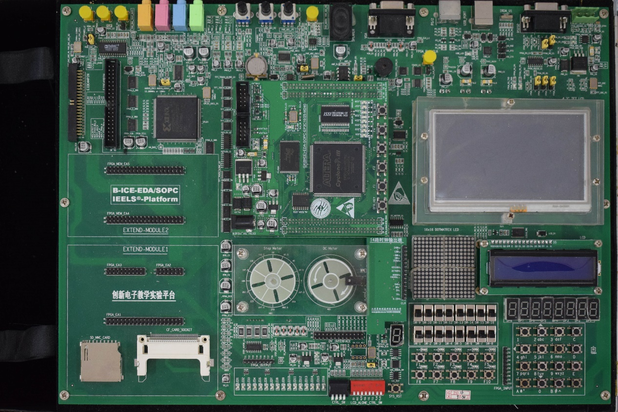 数字电子技术实验室采用B-ICE-SOPC创新电子教学实验系统平台及多媒体网络教学系统,可以完成《数字电路与逻辑设计》、《数字电子技术课程设计》、《数字通信电路课程设计》等课程的实验教学和设计。该创新平台集众多功能于一体,根据研发需求,可实现基于ALTERA、XILINX、ACTEL、Lattice等厂家的软/硬核处理器相结合的嵌入式系统设计。本平台结合QuartusII集成开发软件进行可编程逻辑器件开发,全部过程包括以下步骤:设计输入、综合、布局和布线、验证和仿真,以及可编程逻辑器件的编程和配置。员工通过编程,将项目下载到硬件上直观地实现,增强了员工对电子系统设计技术的理解和开发调试能力,掌握电子设计自动化的全过程。